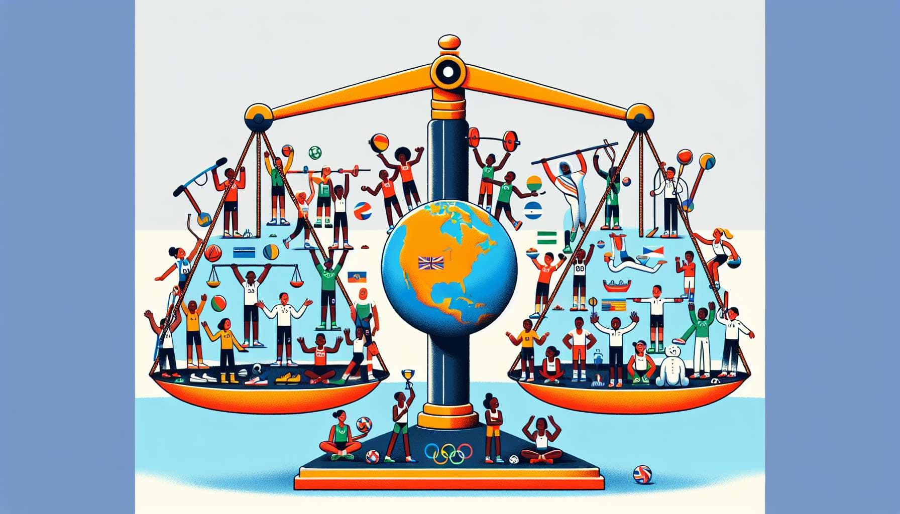 Related: height-limit basketball (where each team has a total height limit they must be under), or the story Harrison Bergeron. Or the story "For Each" by Richard Ngo.